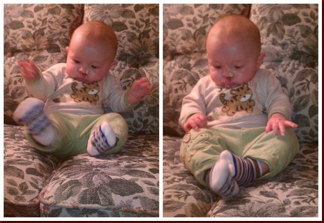 The day I got new glasses, and Jayden got his helmet. I think Mommy was a little more excited about her new accessory than baby was…