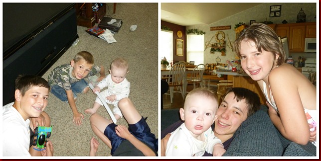Look who zonked out in his swing one day. He fell asleep while it was still swinging, and would sway back and forth with it, until I laid him back in the chair.